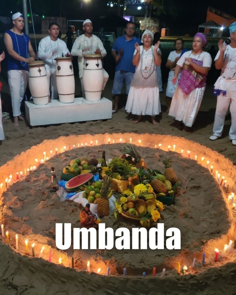 Umbanda: Religião genuinamente brasileira, com forte sincretismo (Orixás, santos católicos, elementos espíritas e indígenas), foco na caridade e incorporação de “entidades de luz” (Caboclos, Pretos-Velhos, Crianças).